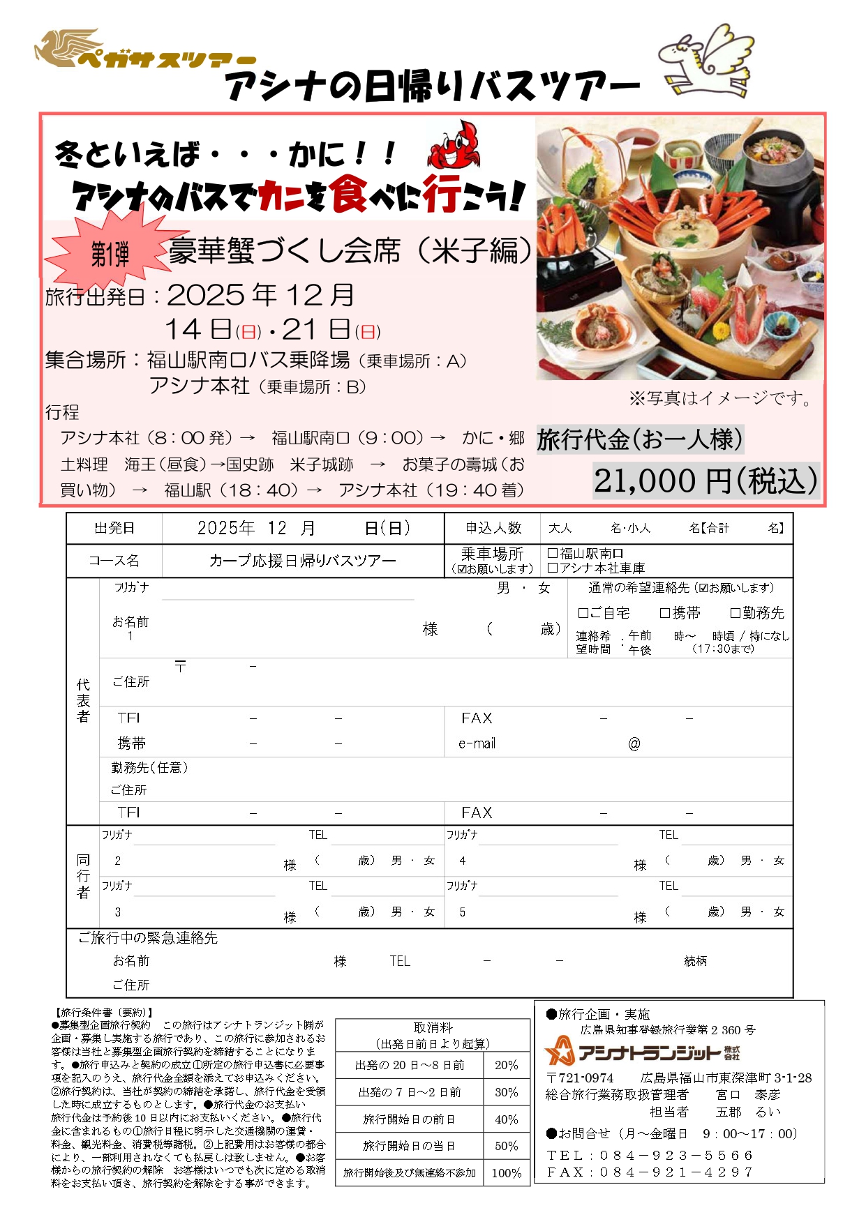 【9月18日新着‼】アシナのバスでカニを食べに行こう!ツアー